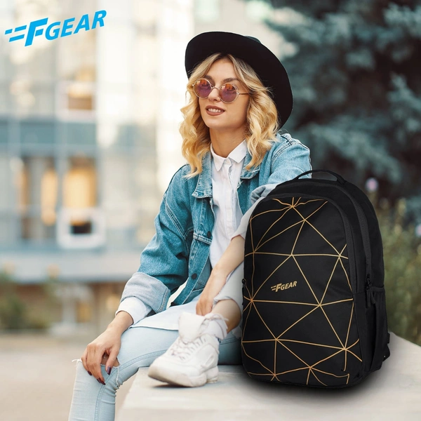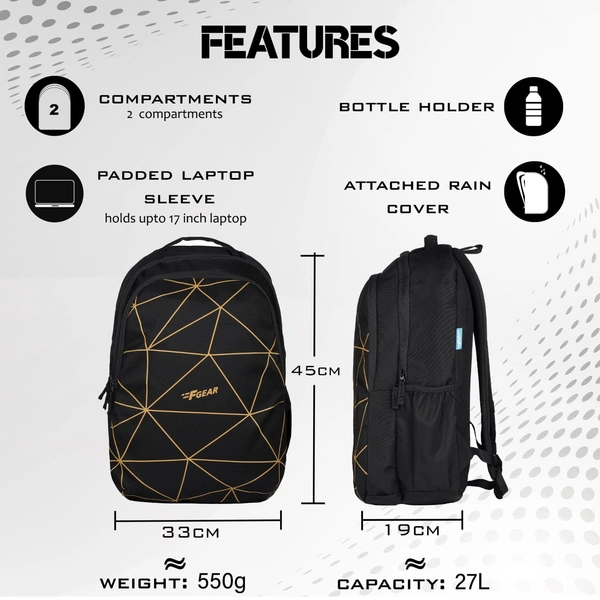 Chamber Black 23L Laptop Backpack with Raincover-Colour: BLACK
